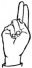 На ћирилици написано СОЊА ГОДОЧЕВИЋ састоји се из 13 слова [?]. Исписано ћириличном једноручном азбуком за глувонеме:
